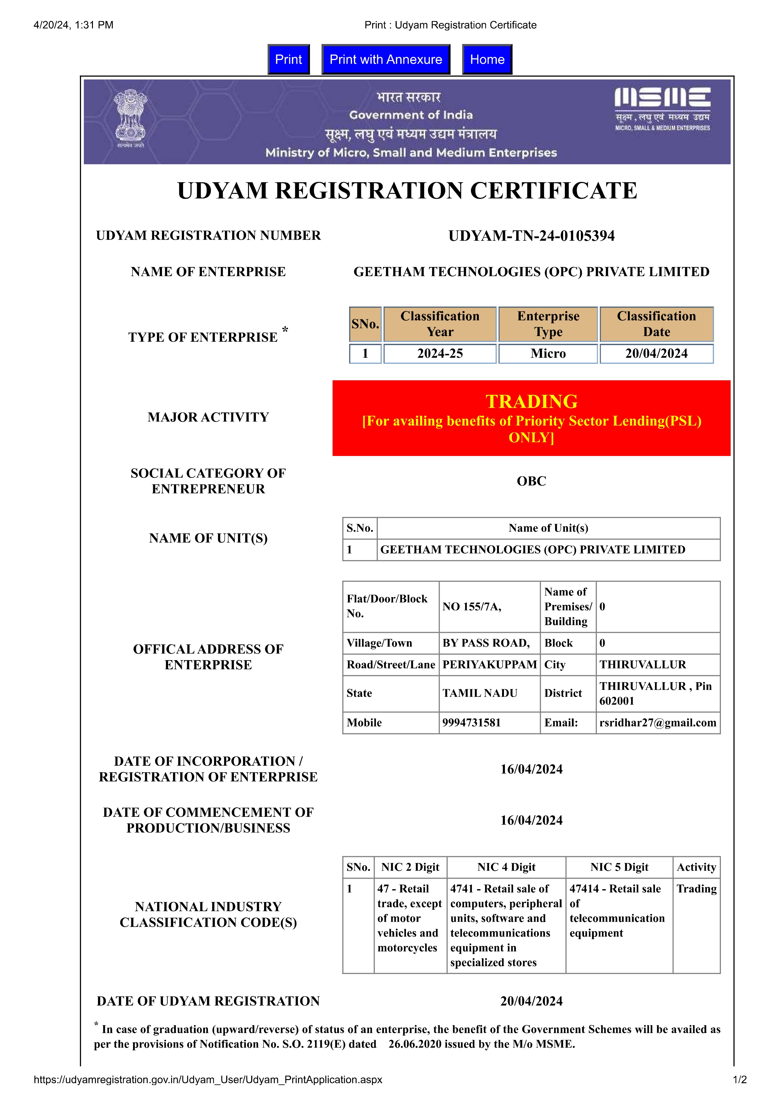 Tiruvallur - 602001